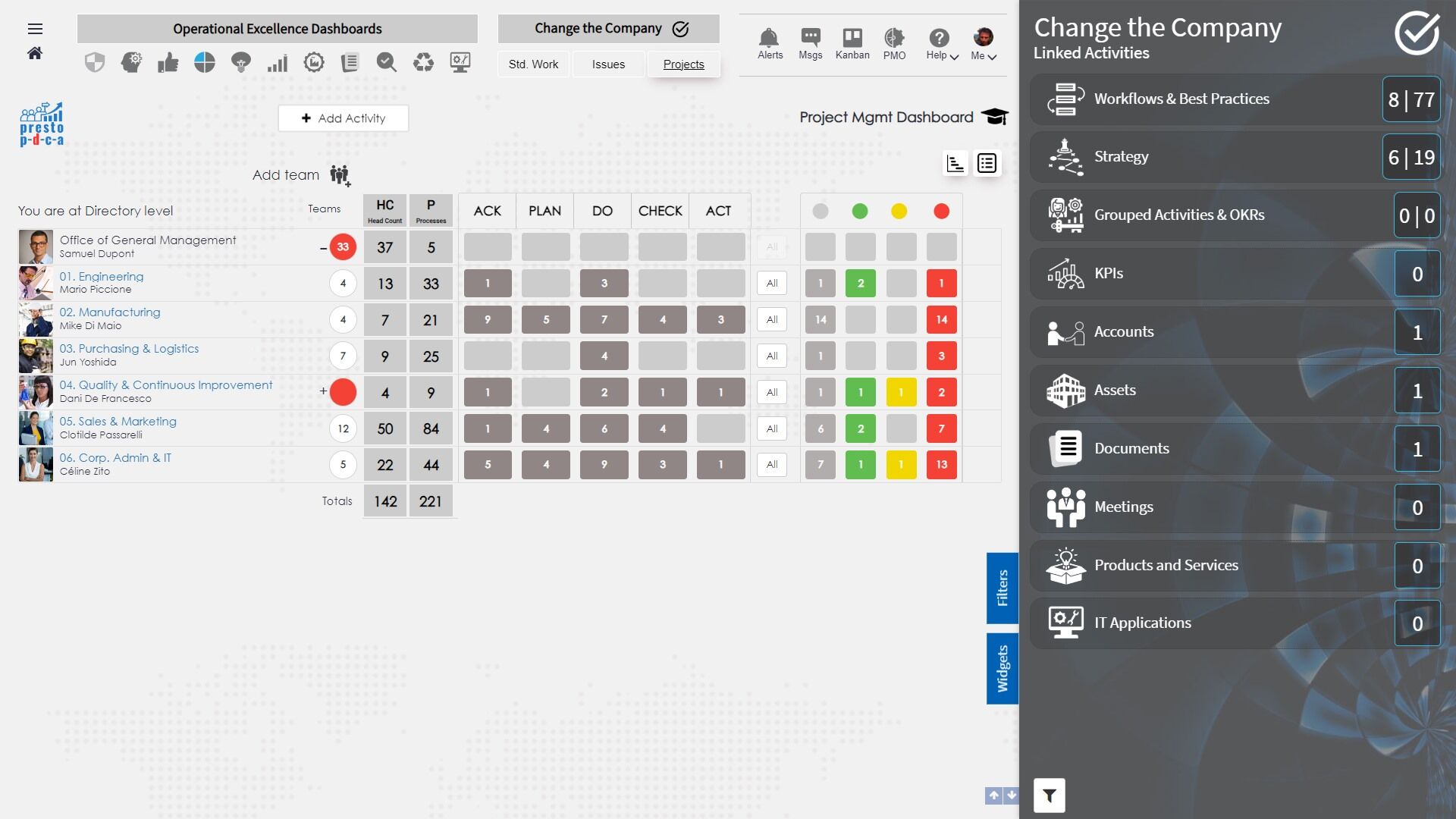 Building Your Project Task List In Presto PDCA