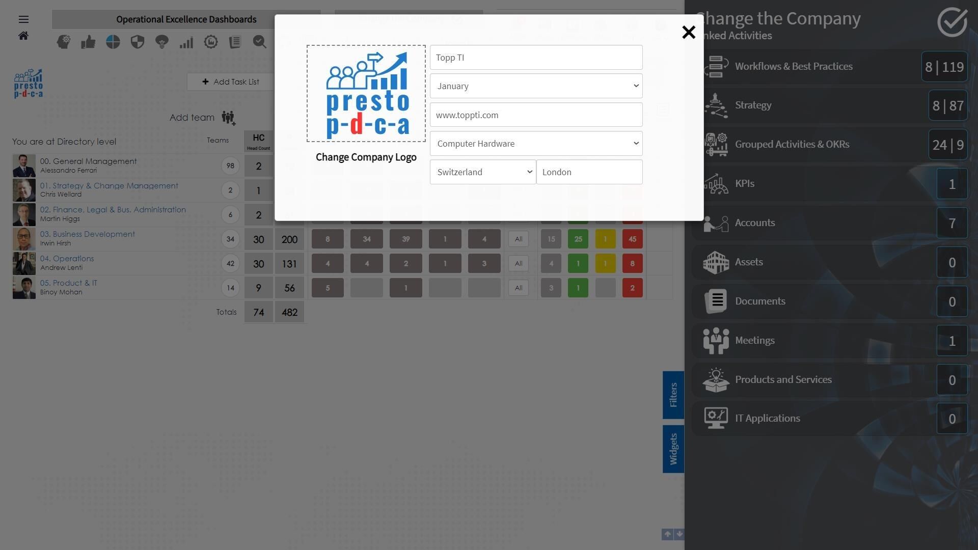 1. Click on the Company Logo to open the edit panel