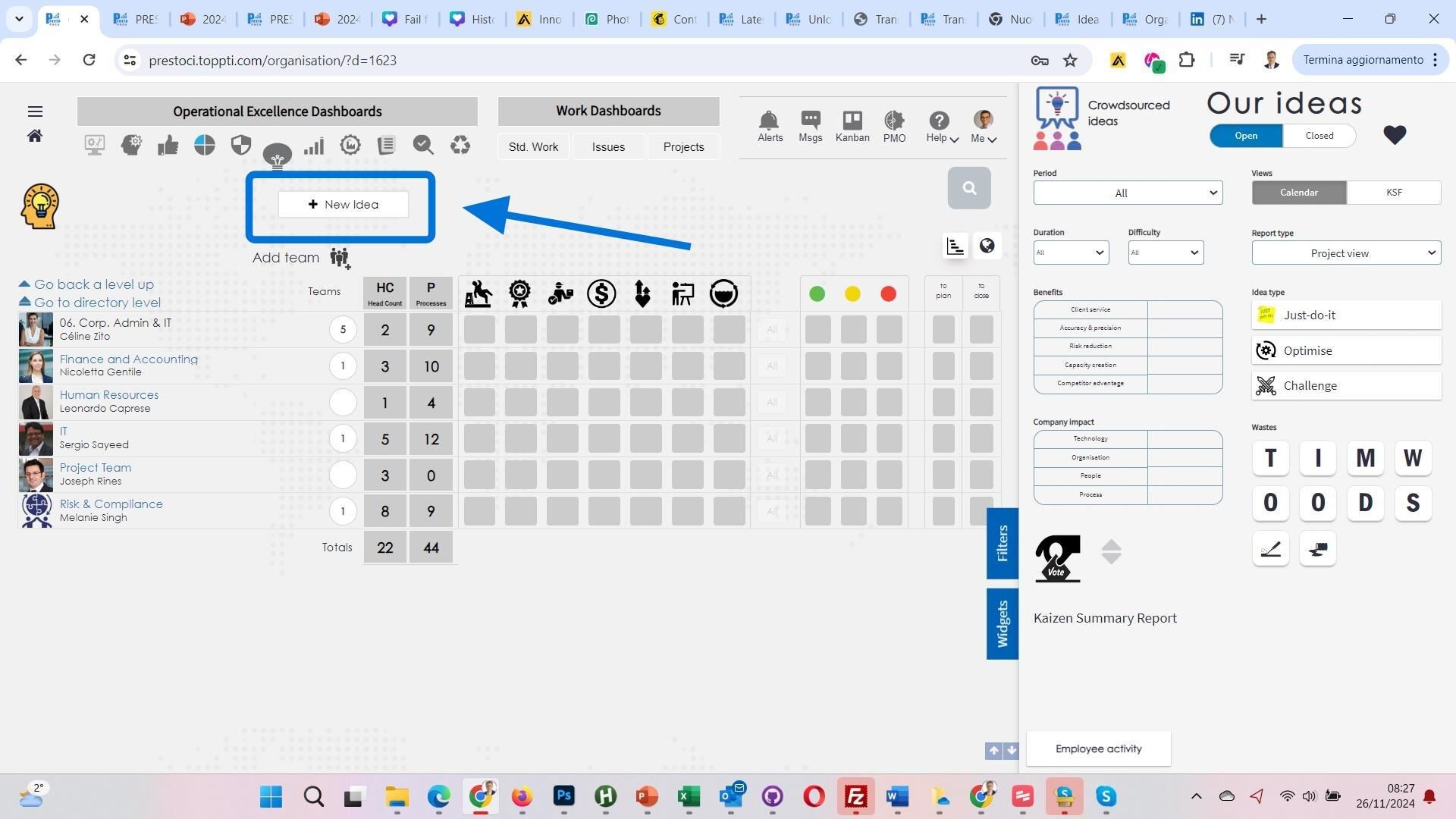 The Idea Capture feature empowers staff members to propose improvements or innovations for the company through a structured and straightforward process. This feature guides users to document their ideas comprehensively, using Presto's predefined framework, which ensures that ideas are categorized and classified according to predefined criteria. This structured approach allows management to easily group and filter ideas based on various perspectives, such as operational efficiency, customer satisfaction, or employee engagement. By enabling all staff members to contribute their ideas, Presto fosters a culture of continuous improvement and innovation, ensuring that valuable insights from every level of the organization are captured and considered.